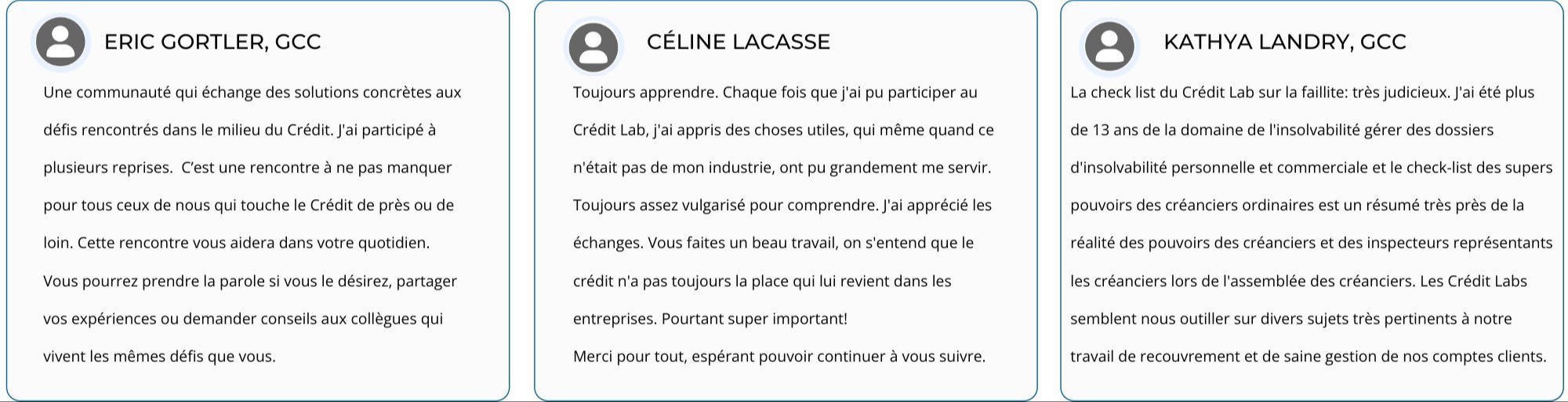 - Crédit Labs bi-mensuels en direct de sept. à juin.